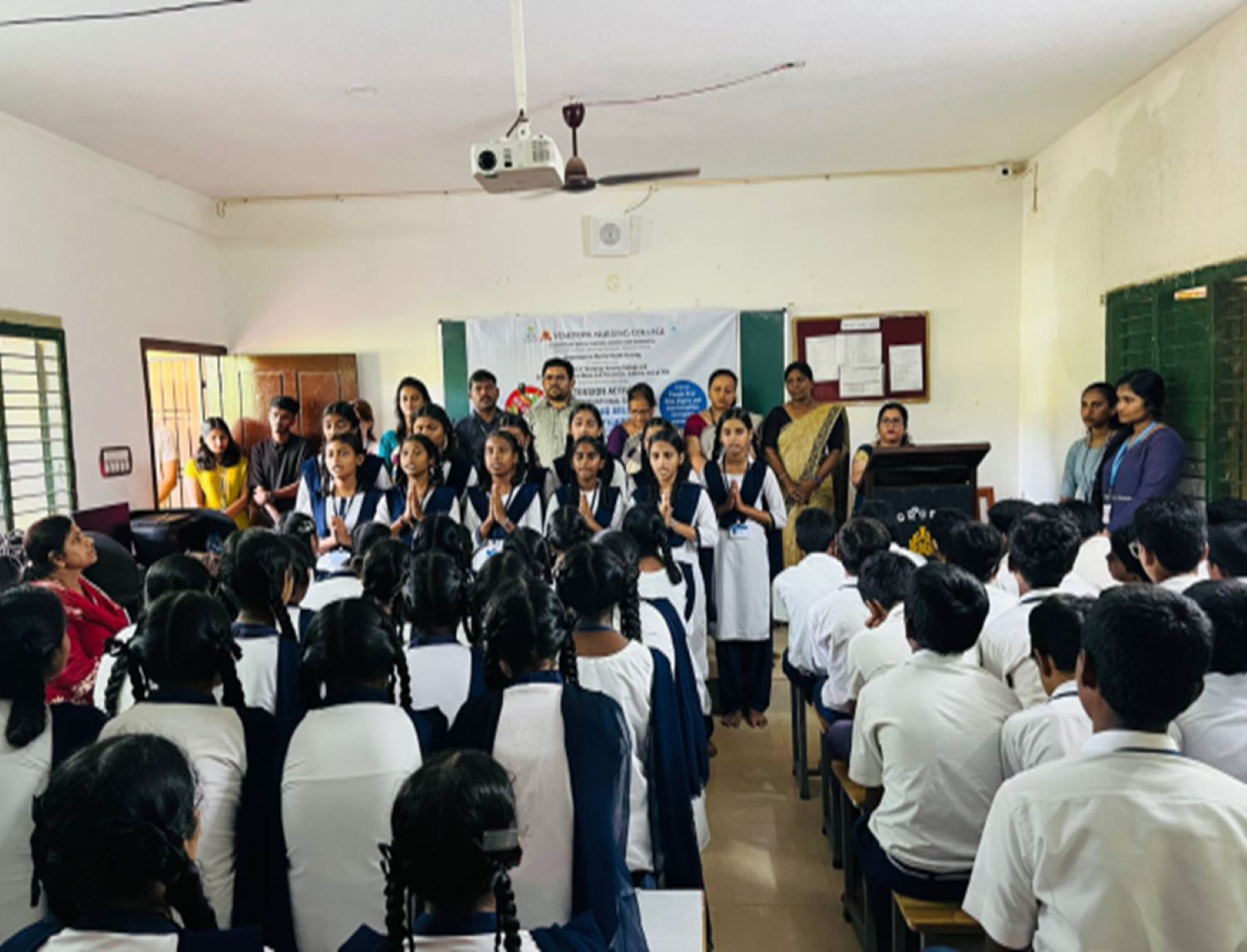 The International Day Against Drug Abuse and Illicit Trafficking 2023 was observed by the Department of Mental Health Nursing in collaboration with NSS Unit–V and the Centre for Substance Abuse and Prevention, Satellite Unit (CFSAP) of Yenepoya Nursing College at Dakshina Kannada Jilla Panchayat, Government Higher Primary School, Kalkatta. The objective of the event was to create awareness among school children regarding substance abuse, its ill-effects, management and preventive measures. Posters exhibition and pamphlet distribution were done followed by an awareness talk. Feedback from students showed a beneficial impact.