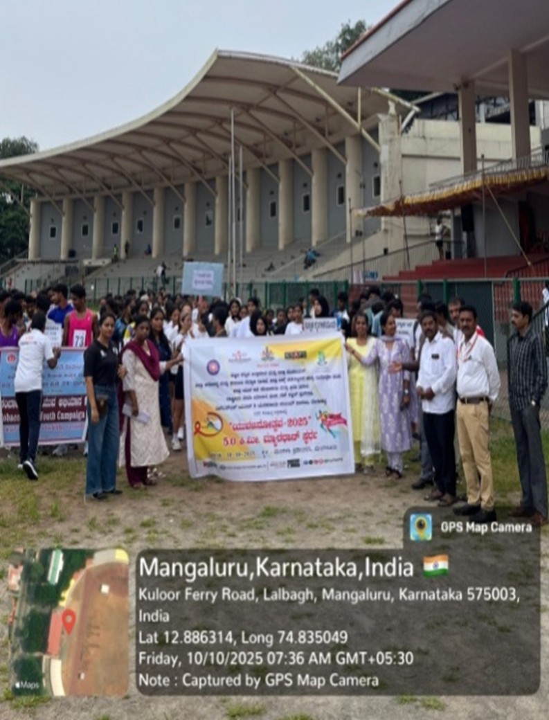 The NSS Unit V, in collaboration with the District AIDS Prevention and Control Unit (DAPCU), organized a 5-kilometer marathon on 10th October 2025 at Mangala Stadium, Mangaluru. The marathon aimed to raise awareness about HIV infection and AIDS prevention, targeting youth aged 17–25 years. Students carried placards and raised slogans emphasizing HIV prevention and safe practices. A total of 136 participants took part, contributing to youth engagement in social awareness as part of ‘Yuvajanothsava 2025’.