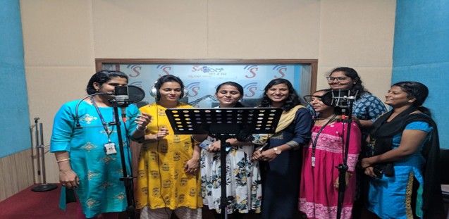 The NSS Unit V and Department of Community Health Nursing organized a radio program on the occasion of Khadi Mahotsav with the theme “Vocal to Local”. Faculty Mrs. Navya, Ms. Monisha and NSS volunteers (students) presented a song on the importance and values of Khadi in Radio Sarang run by Aloysius College, Mangaluru. The radio song presented in Kannada language was recorded on 30th October and broadcasted on 2nd November 2023 at 7.30 PM.