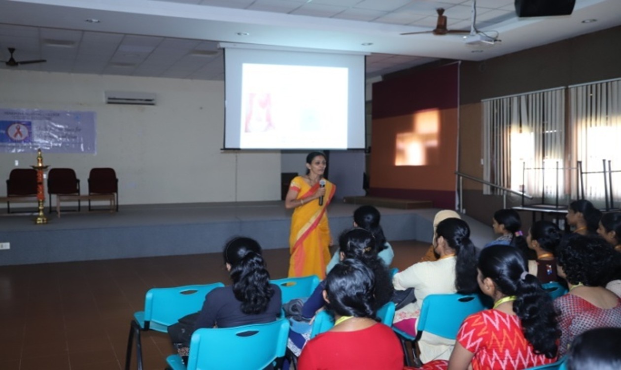 On October 30th, the NSS Unit V, YNC organized a Breast Cancer Awareness Program aimed at raising awareness about prevention, early detection, and support for those affected by breast cancer. Mrs. Navya, NSS Programme Officer, Yenepoya Nursing College, was the guest speaker. The program emphasized regular screening, self-examination, healthy lifestyle choices and available support resources. The event fostered meaningful learning and dialogue.