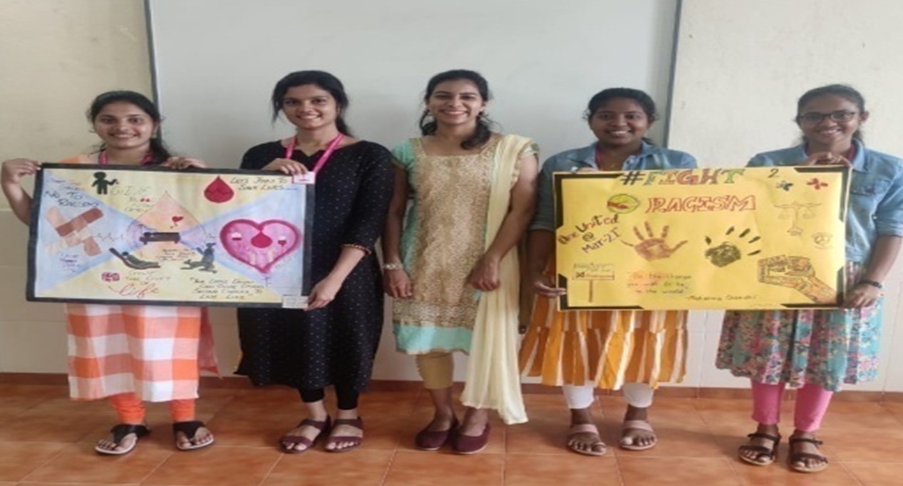Red ribbon Club & Youth Red Cross Unit Yenepoya Nursing College in collaboration with KSAPS & NACO, D.K, Mangalore Blood Donors Association Observed International day for Elimination of Racial Discrimination on 26.03.2022 at Seminar Hall, Yenepoya Nursing College